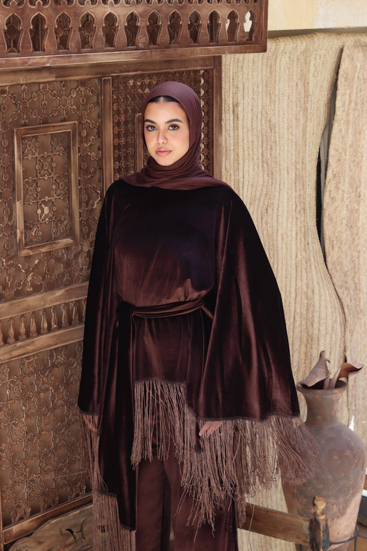 Vira Fringe Velvet Set In Brown