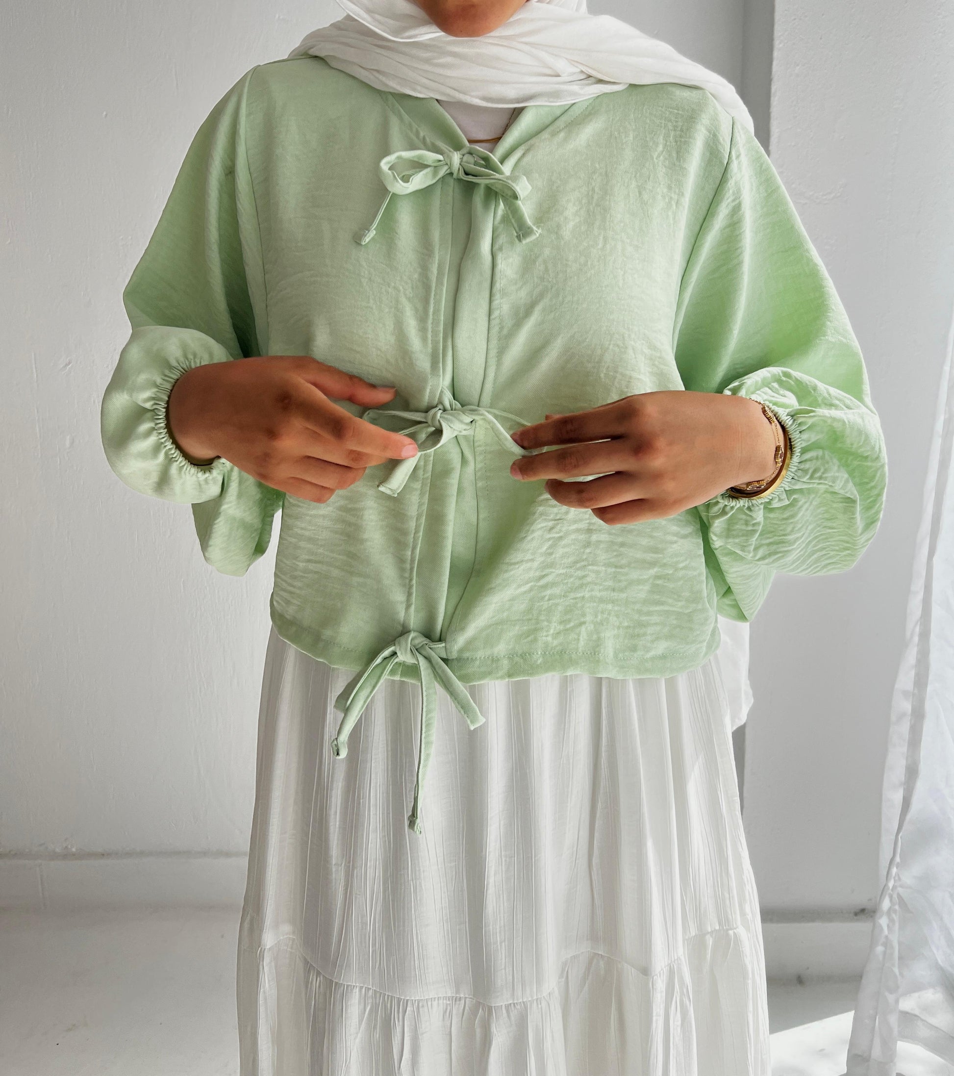 This cute top with bow details is perfect for adding a playful yet elegant touch to your wardrobe.