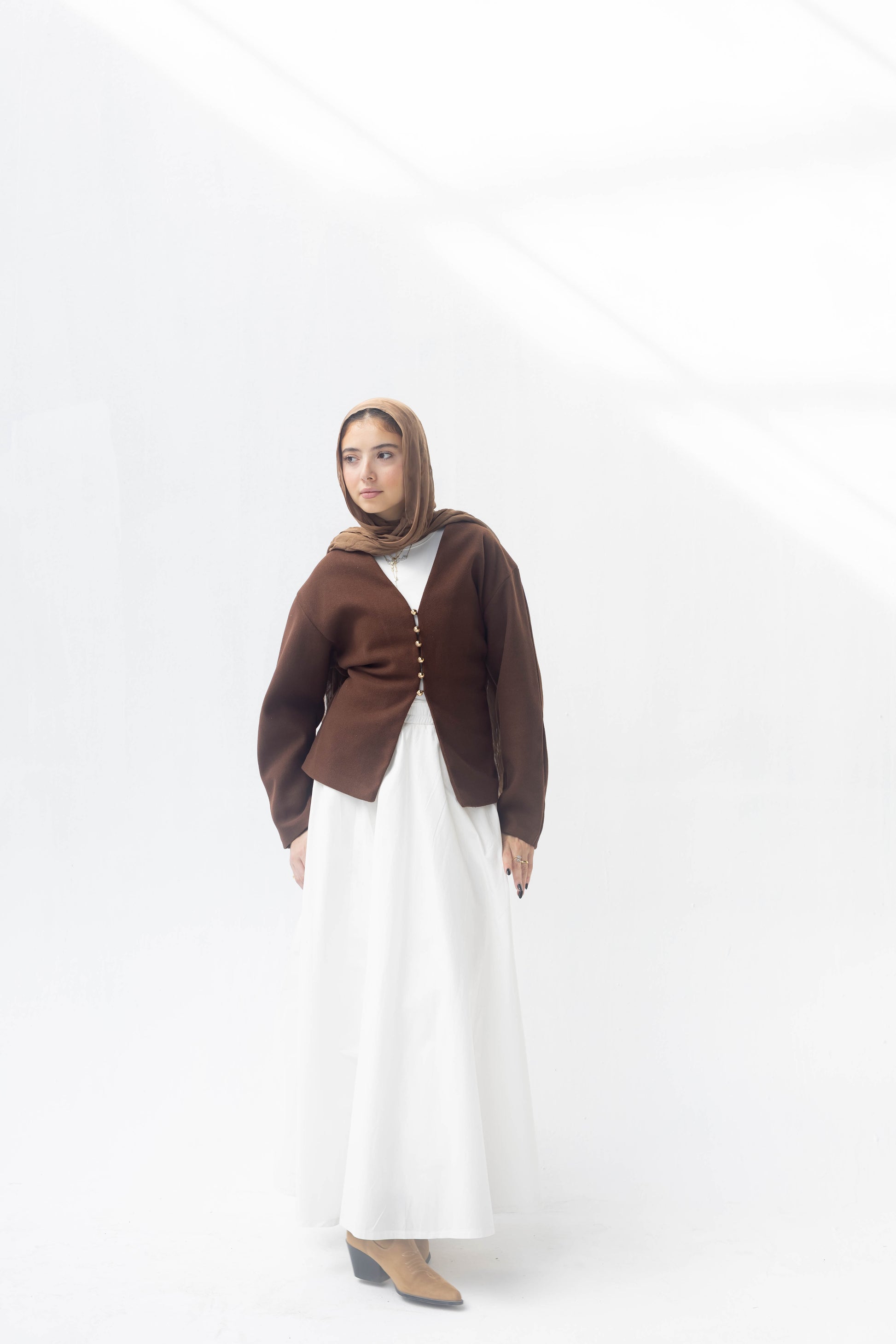 Our ultra elegant tailored Naya top finished with delicate gold mini buttons for a refined touch. Designed to shape the body beautifully with its adjustable back belt, giving you the perfect fit every time. Available in timeless shades: brown, black, and beige.
